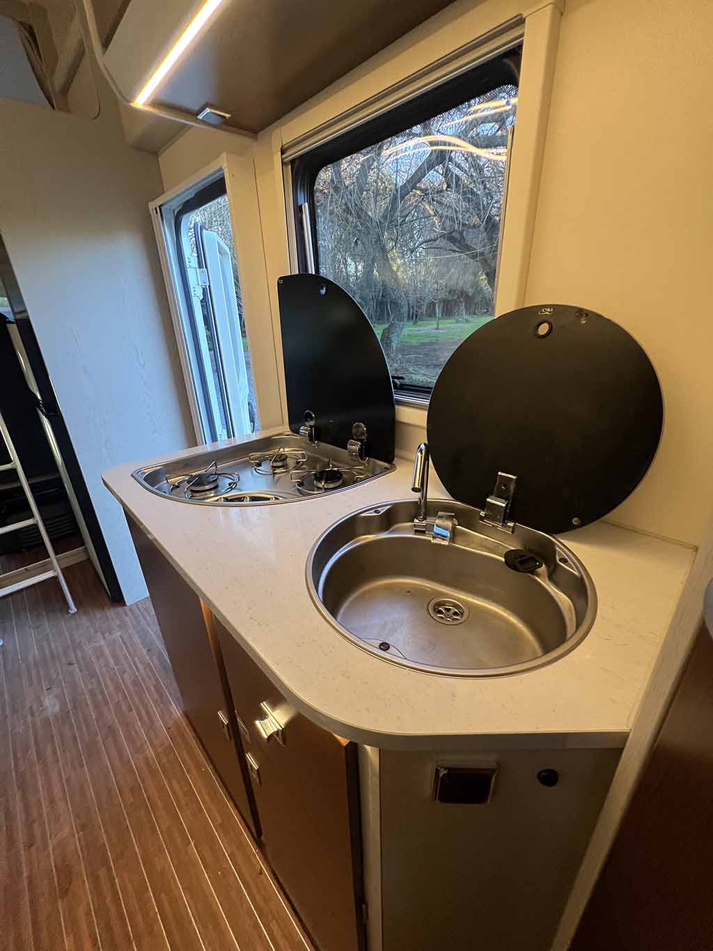 - Cocina completa con 3 hornillas y lavaplatos con agua caliente
